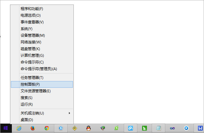 按鍵盤上的win+x。或者右擊桌面的開始菜單。在彈出的菜單中,選擇“控制面板”。