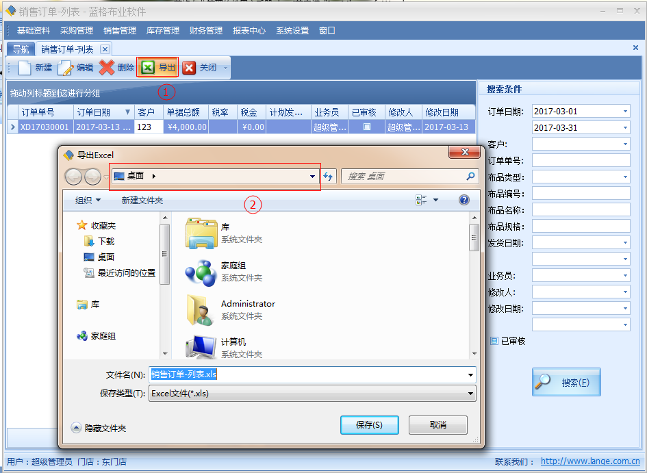 導(dǎo)出是把當(dāng)前列表中所有的記錄以 Excel 表格方式導(dǎo)出。在銷售訂單列表上點(diǎn)擊工具欄【導(dǎo)出】按鈕。