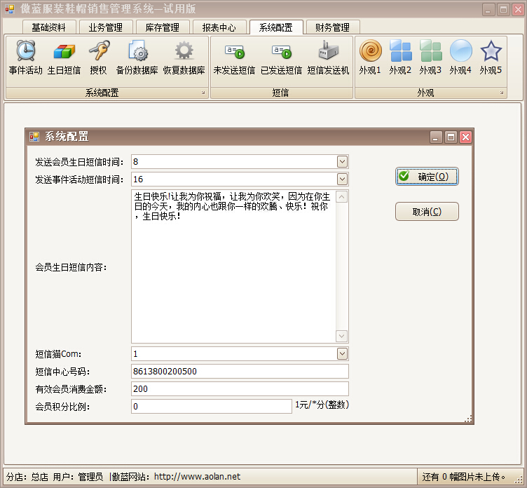 傲藍(lán)服裝銷售管理系統(tǒng)短信開關(guān)
