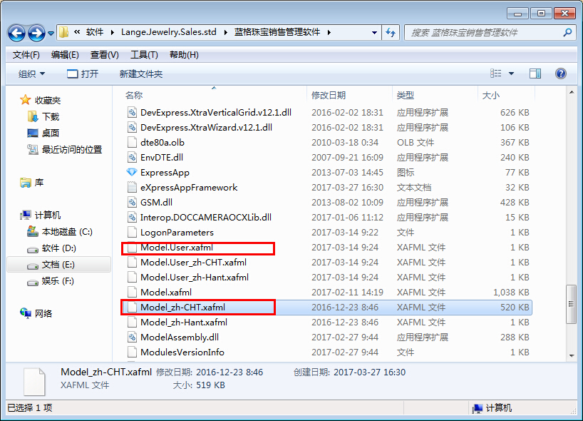 第二步進入軟件的文件夾找到【Model.User.xafml】和【Model.User_zh-CN.xafml】并刪除,重新啟動軟件即可