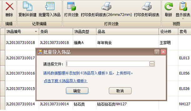 傲藍(lán)珠寶首飾管理軟件支持批量導(dǎo)入excel飾品資料、飾品復(fù)制功能