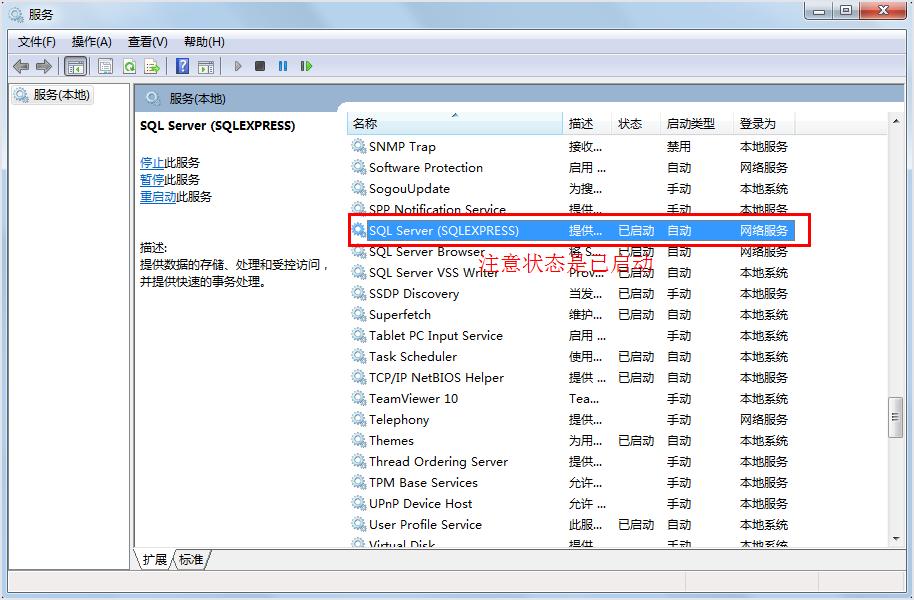 第三步,點(diǎn)擊電腦開始-控制面板-管理工具-服務(wù)-SQL server(SQLEXPRESS)