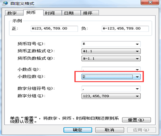 4、進(jìn)入其他設(shè)置,找到貨幣,將小數(shù)點的位數(shù)默認(rèn)為2
