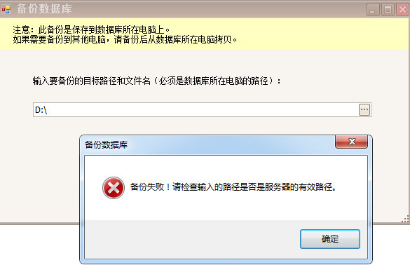 但是,操作用戶備份時候,并沒有在服務(wù)器上進行操作,而是在客戶端操作,會出現(xiàn)如下圖的提示。