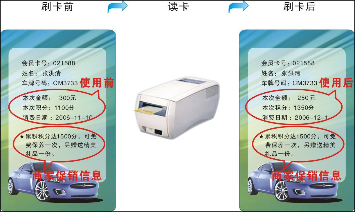 將消費者的消費金額/儲值余額/積分點數(shù)等情況打印于卡面上,真正做到讓客戶明明白白消費。