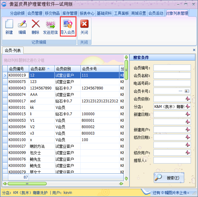 批量導(dǎo)入會員操作:在【會員列表】支持批量【導(dǎo)入會員】,將會員資料錄入到傲藍皮具護理軟件會員模板里,點擊【導(dǎo)入會員】,找到模板打開,導(dǎo)入成功。