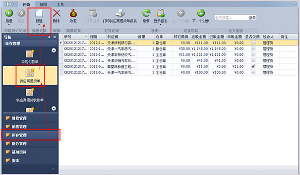 第1步、登錄傲藍(lán)汽車維修管理系統(tǒng),點(diǎn)擊“庫(kù)存管理”-“供應(yīng)商退貨單”,出現(xiàn)供應(yīng)商退貨單列表界面。