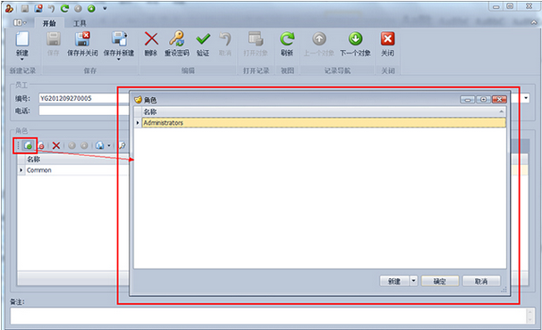 第3步、點(diǎn)擊“角色”選項(xiàng)卡的“鏈接”按鈕,在彈出的角色列表選擇界面中選擇需要分配給該員工的角色,則該員工就擁有該角色的所有權(quán)限。