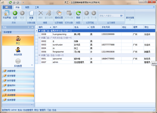 傲藍(lán)眼鏡銷售管理軟件使用的是用戶登錄系統(tǒng),要使用軟件必須先在軟件中注冊(cè)成為用戶,在傲藍(lán)眼鏡銷售管理軟件中,用戶即員工,因此注冊(cè)用戶實(shí)際上就是把一個(gè)員工的信息建立到軟件中。